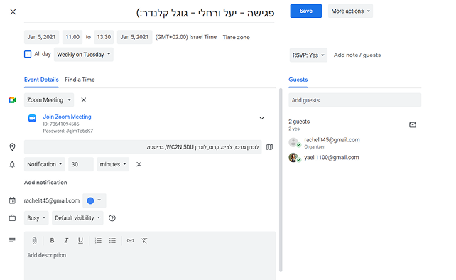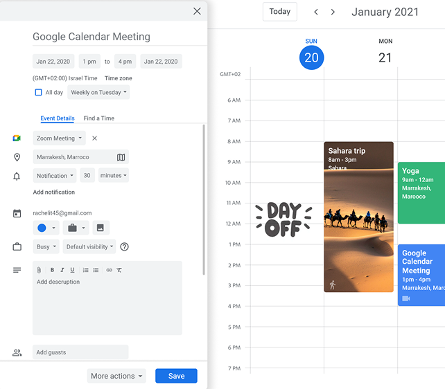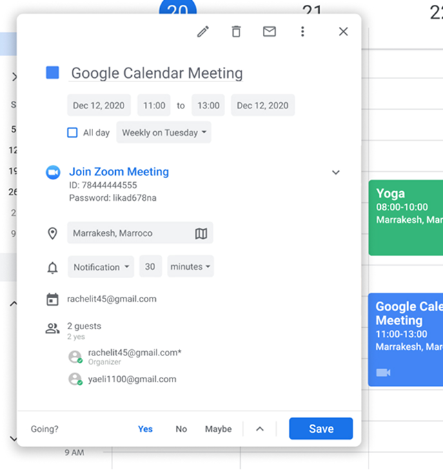 A single click on an event opens a side panel with its details. To edit, the user must click the edit button, which redirects to advanced editing in a new window.